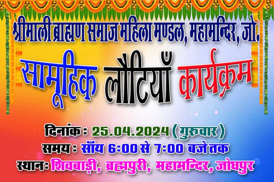 सामूहिक लोटिया कार्यक्रम महामंदिर श्रीमाली समाज जोधपुर
